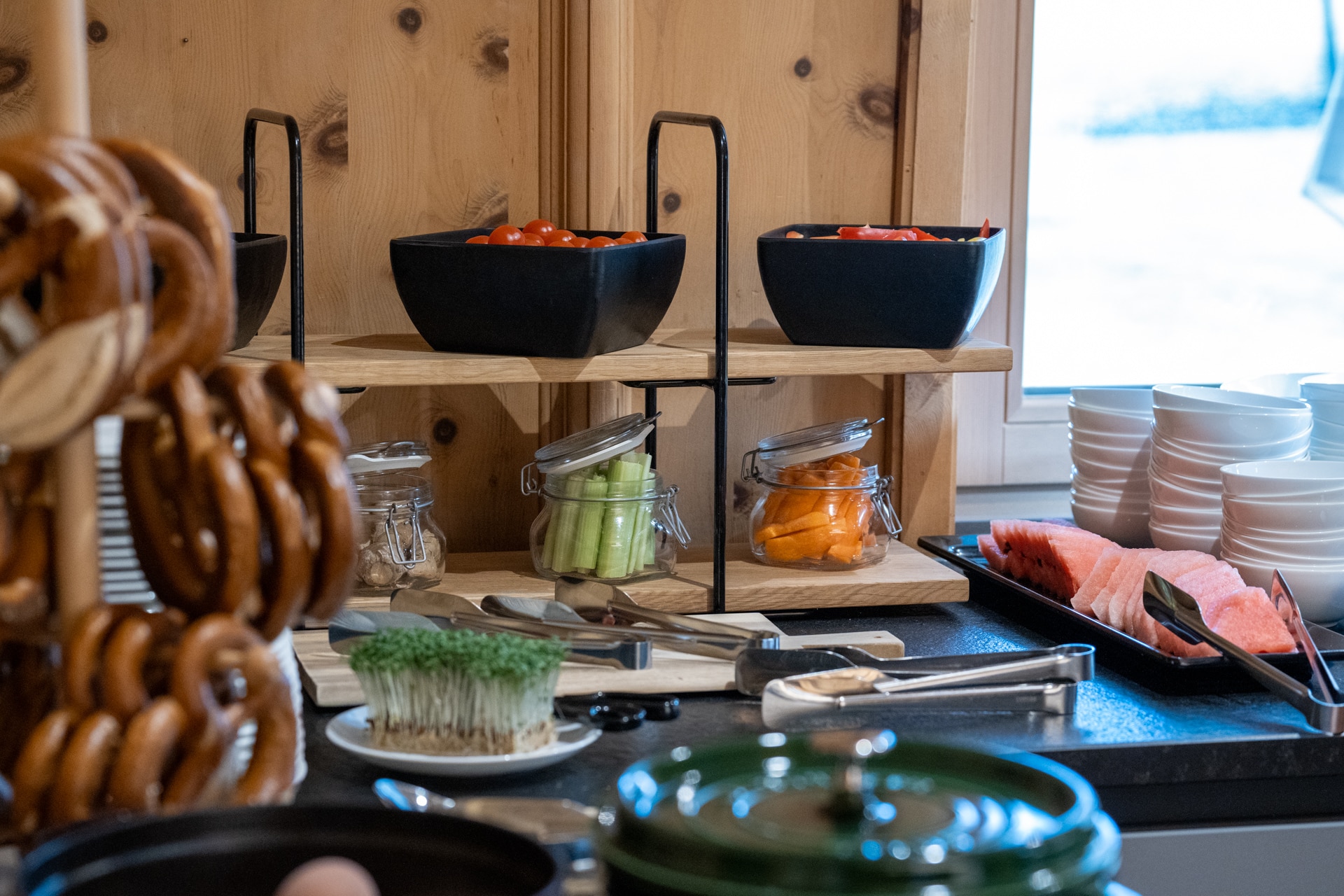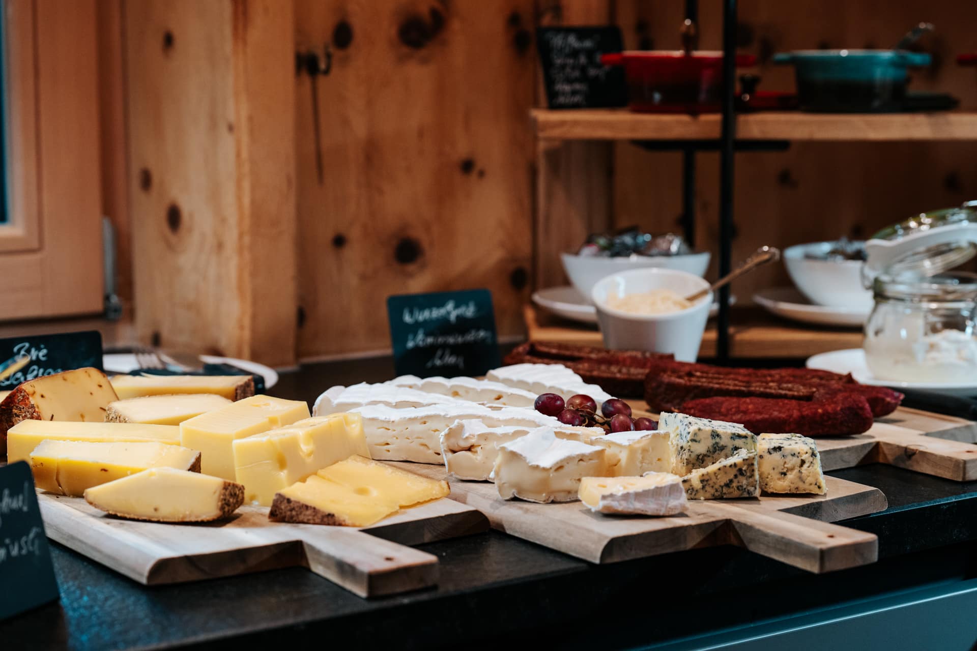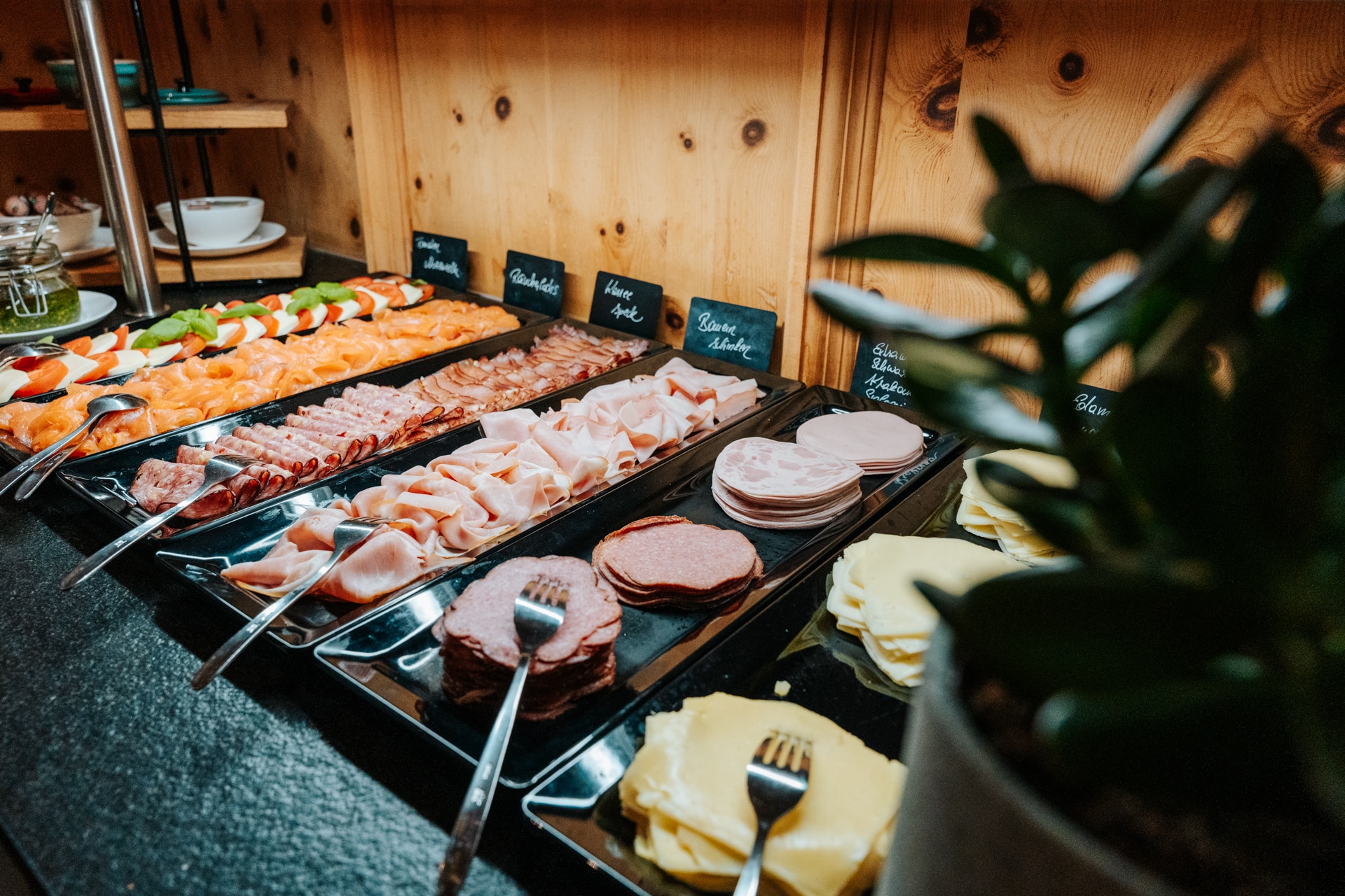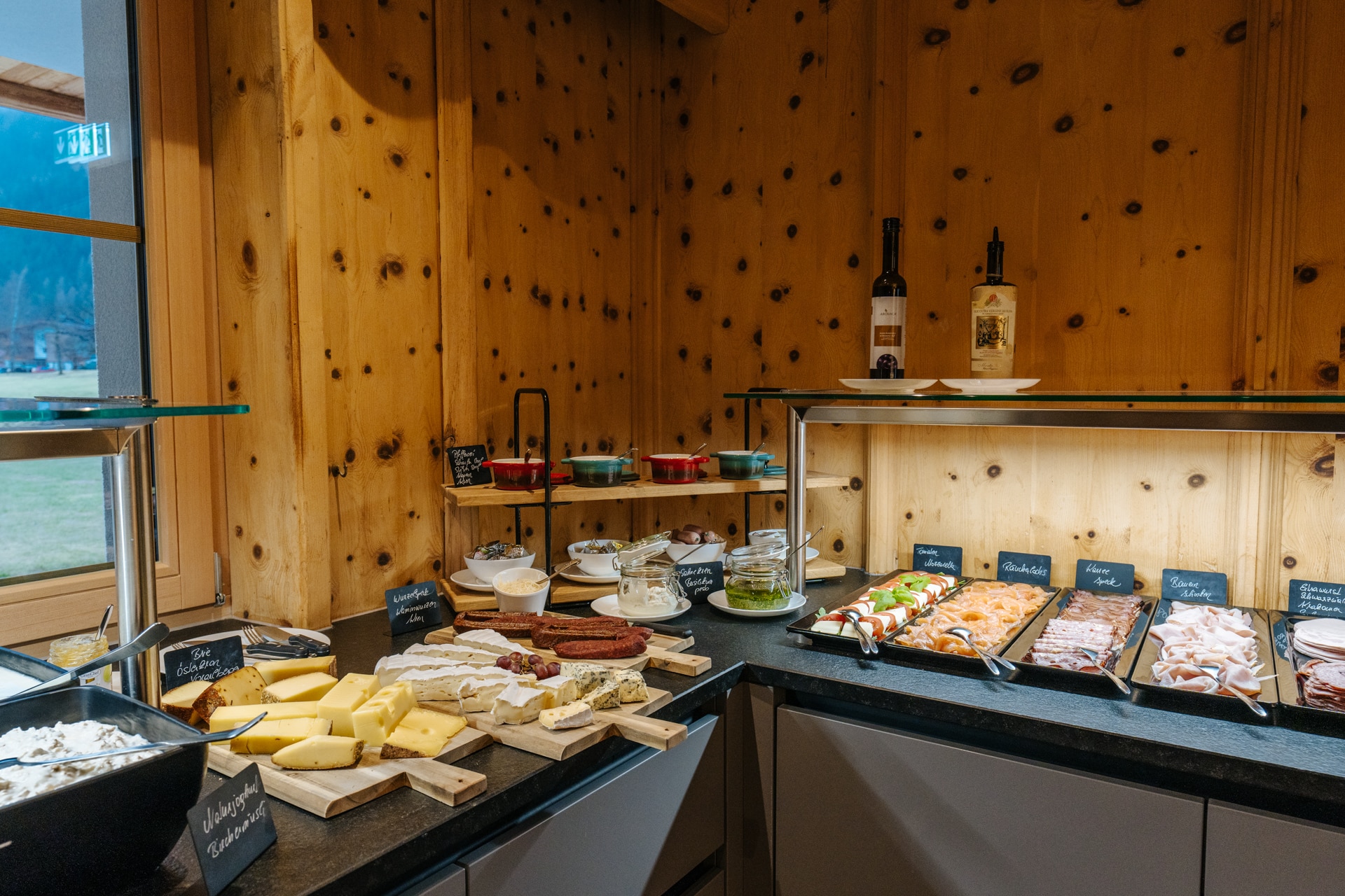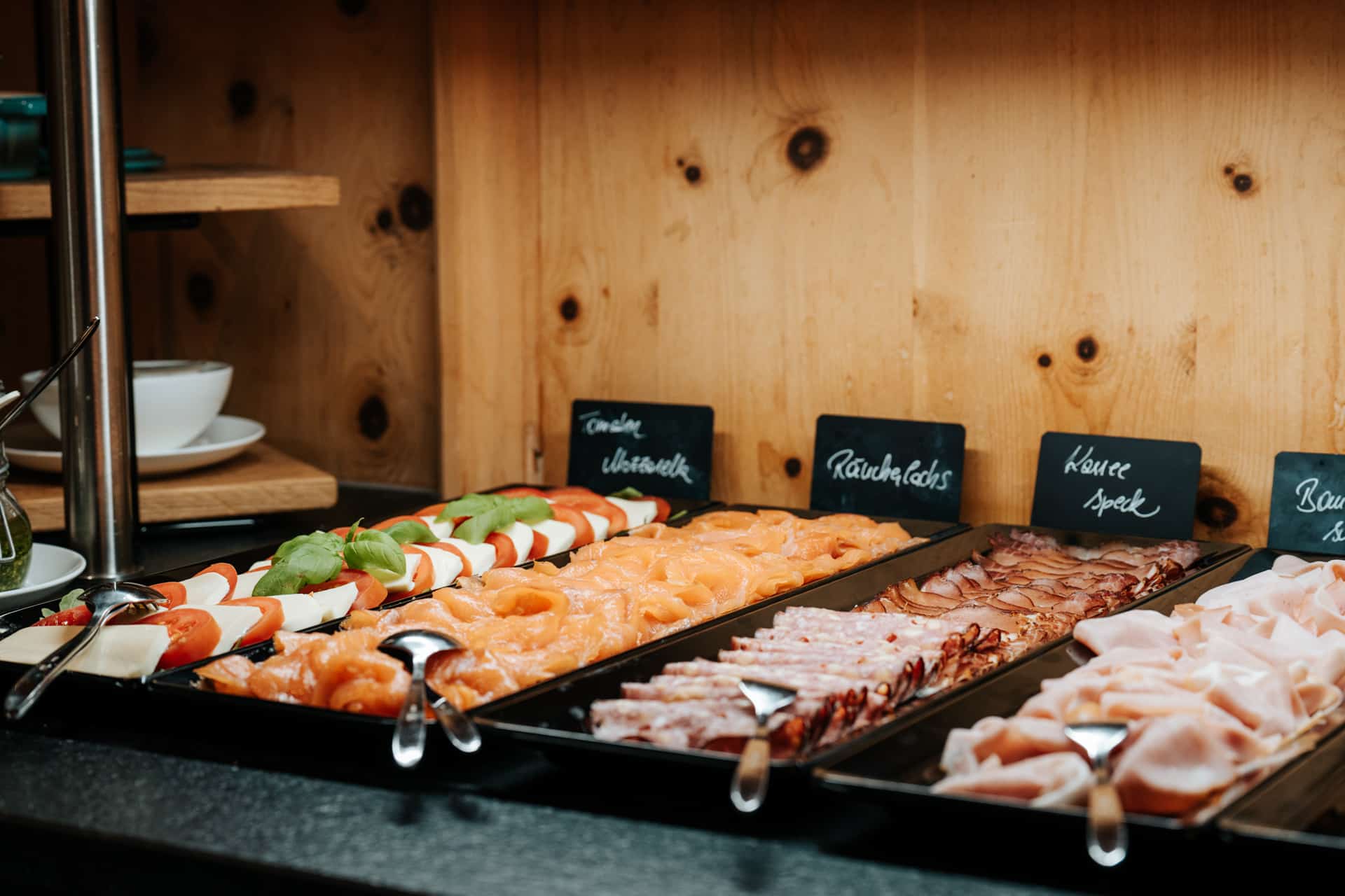 Es erwartet Sie ein Frühstück mit regionaler-Ecke, hausgemachten Marmeladen, heimischer Speck und Käse, laktosefreie Produkte, vegane Alternativen, Brot vom heimischen Bäcker und viele weitere kulinarische Gaumenfreuden.